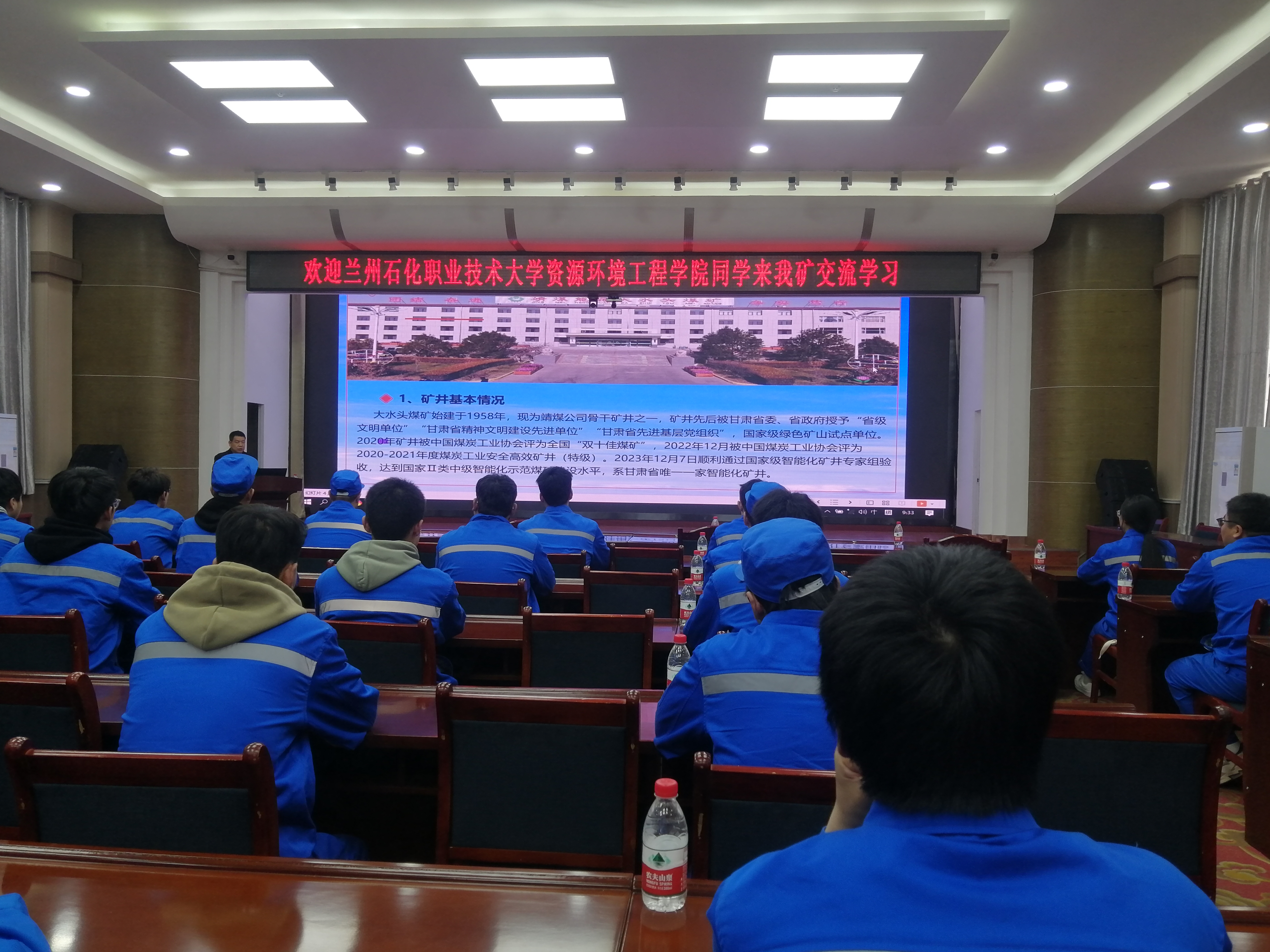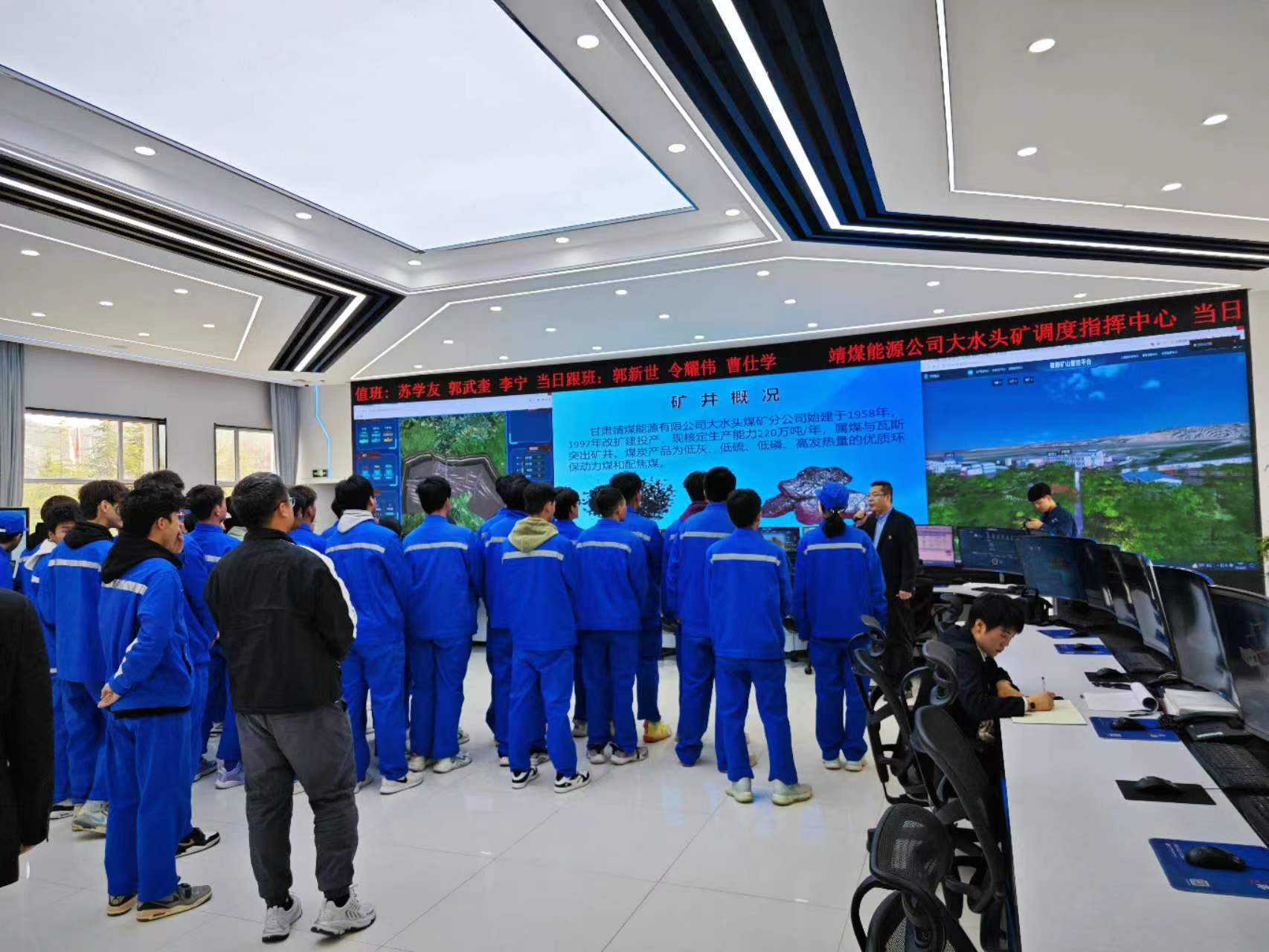 本次实习得到了企业的高度重视,对员工的到来表示了热烈欢迎。企业相关技术人员通过系列讲座,分别介绍了矿井基本情况、企业文化理念、煤矿智能化开采应用与取得的进展、煤矿安全生产等。讲座结束后,企业技术人员带领员工参观了地面综合调度中心、煤矿智能化开采地面控制中心、通风机房等企业重点工作区域。