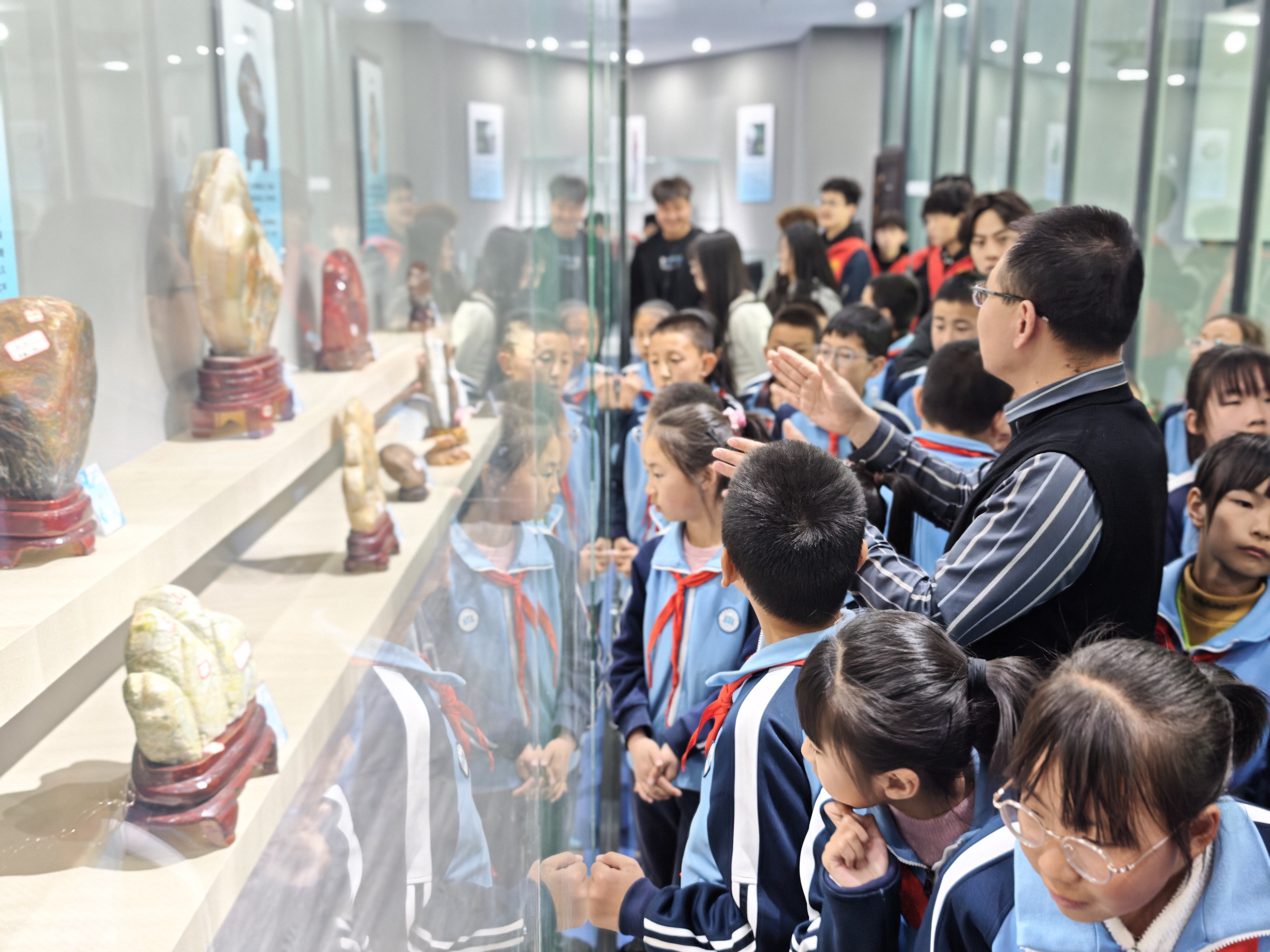 在讲解员的引导下,师生们依次参观了地球演化厅、三大岩类展示厅、矿产资源厅等六大主题展区。通过观看地球板块运动模型、触摸亿万年前的岩石标本、体验3D地质灾害模拟场景,员工们直观感受到地球演化的壮阔历程与自然力量的震撼。在矿产资源厅,讲解员结合甘肃“有色金属之乡”的特色,介绍了我国矿产资源的分布与战略意义,引导孩子们思考资源保护与可持续发展的重要性,激发“珍惜资源、科技报国”的使命感。奇石玉石展厅内,形态各异的玉石展品和背后的文化故事,则让同学们感受到中华传统玉文化中“以玉比德”的深刻内涵,潜移默化中增强文化自信。